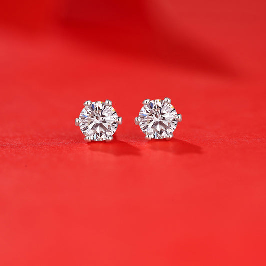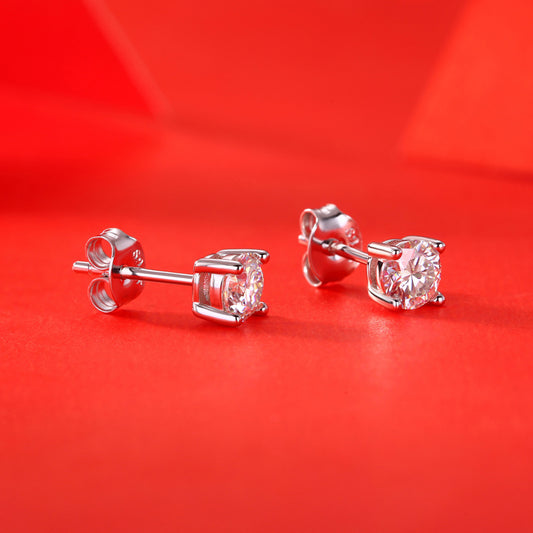 Joy Round Moissanite 925 Sterling Silver Stud Earrings