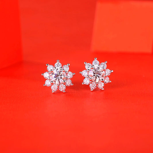 Sunflower Moissanite 925 Sterling Silver Stud Earrings